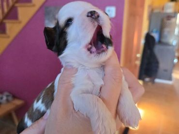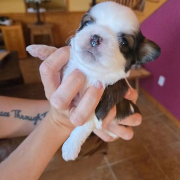 Our babies are adopted quickly, so reach out to reserve your furever friend or to ask any questions. We currently have 3 left. The brown on is our last female The two spotted ones are the males.
